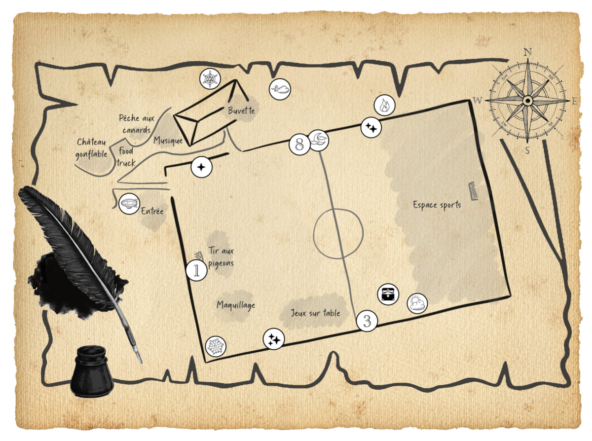 Je l'installe sur le lieu de votre événement ou dans votre structure : les équipes de 2 à 5 joueurs naviguent parmi les étapes à l'aide de leur carte et leur carnet de voyage... et tentent d'accéder au trésor final !